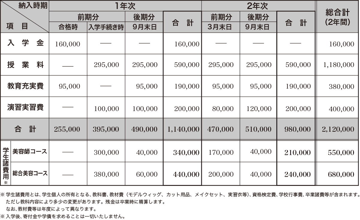 家族の方が、臼井学園の在学生または卒業生の場合、1年次学生諸費用(入学時納入分)は、半額となります。